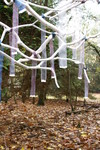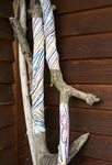 ruimtelijk werk van natuurvoorwerpen, textiel,verf en poëzie